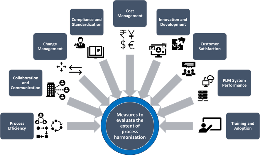 - Implement measures to evaluate the extent of process harmonization: – Without objective measurement, assessing the success of harmonization efforts remains subjective. To demonstrate the value-added by process harmonization, we need to clearly define how we will measure improvements from the current state to the desired future state. This should include specific metrics and key performance indicators (KPIs) to track progress and outcomes. Key Technical Points for Evaluating Process Harmonization in PLM could be: